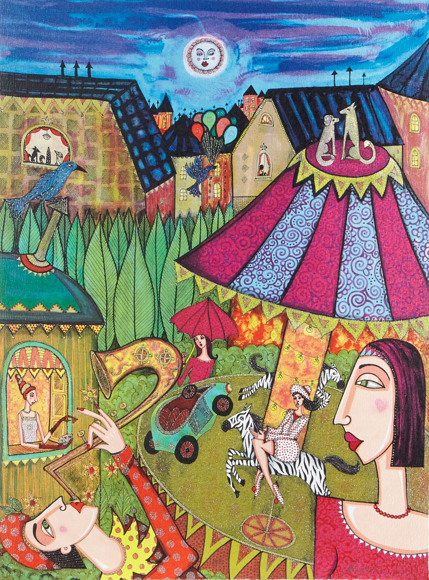Angelica Wiik är en nutida svensk konstnär som älskas av sin publik för sina färgexplosiva och expressiva målningar. Det är uttalad feminism och kärlek till människor, stadslandskap och djur som får hennes tavlor att lyfta och hon är inte blyg när det gäller färgsättning eller val av motiv. Hennes bilder är som sköna drömmar med musiker på taken och hundar i fönstren. Det är bilder som förför den betraktare som vill bli förförd. Det är bilder man blir glad av att betrakta.