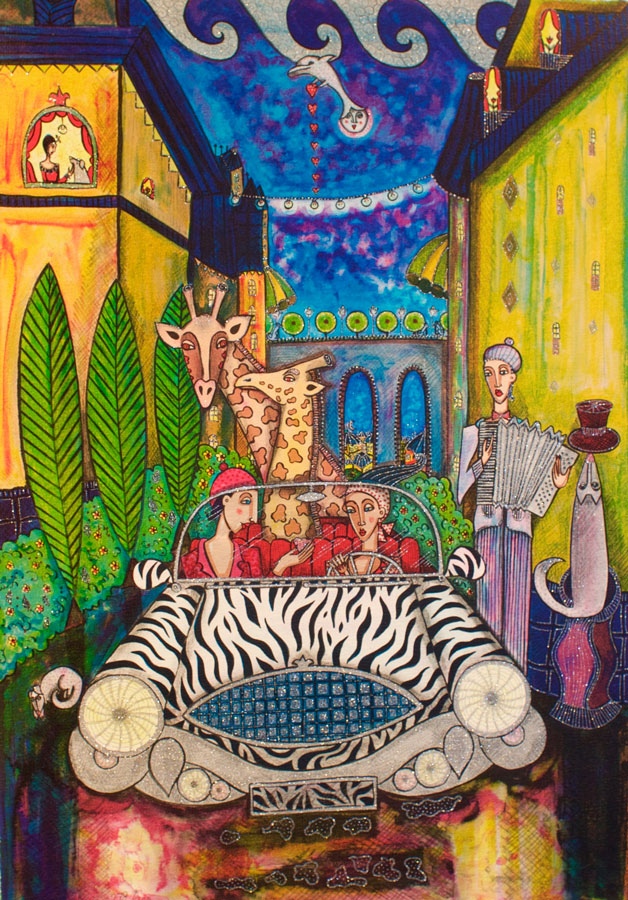 Angelica Wiik är en nutida svensk konstnär som älskas av sin publik för sina färgexplosiva och expressiva målningar. Det är uttalad feminism och kärlek till människor, stadslandskap och djur som får hennes tavlor att lyfta och hon är inte blyg när det gäller färgsättning eller val av motiv. Hennes bilder är som sköna drömmar med musiker på taken och hundar i fönstren. Det är bilder som förför den betraktare som vill bli förförd. Det är bilder man blir glad av att betrakta.