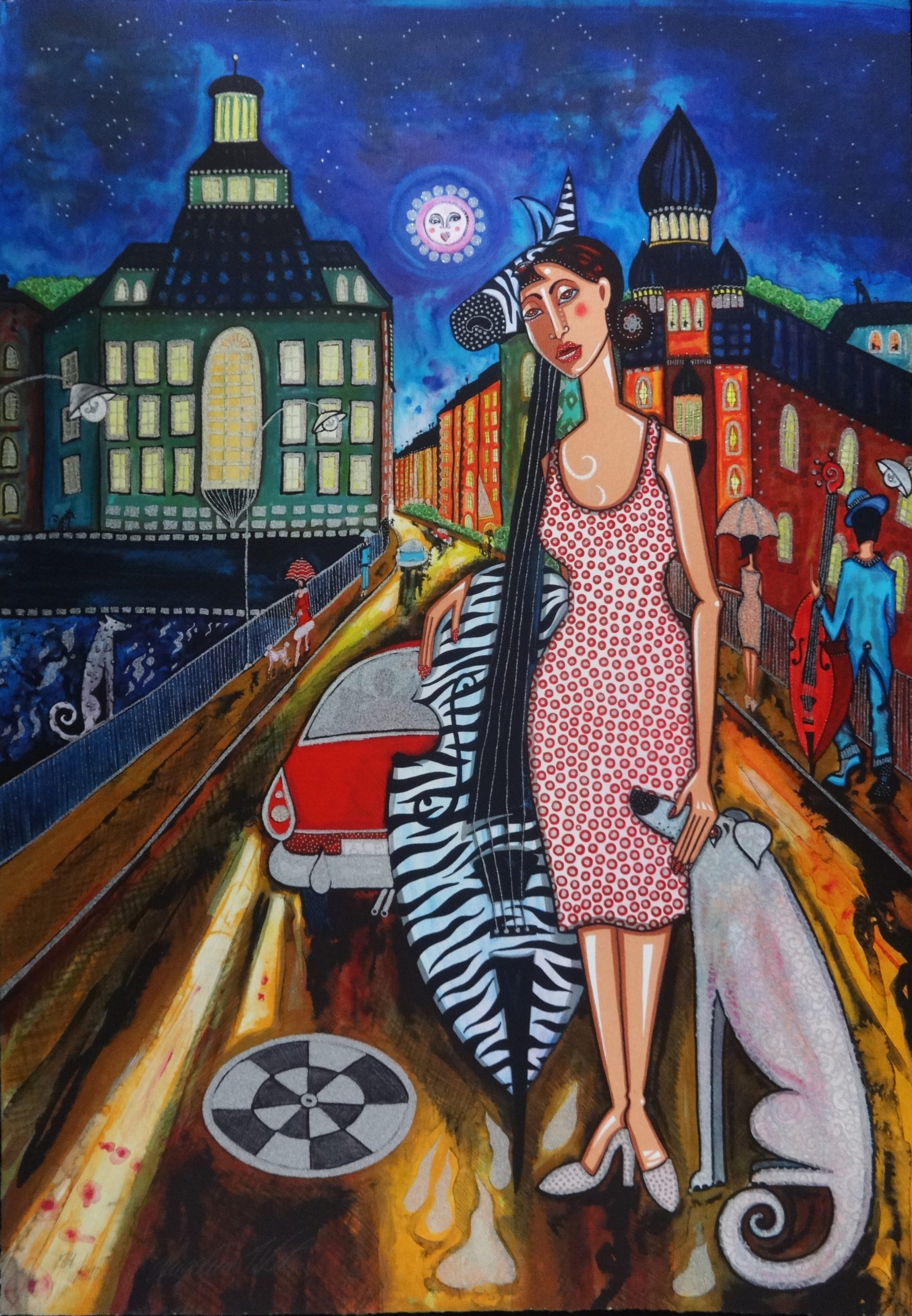 Angelica Wiik är en nutida svensk konstnär som älskas av sin publik för sina färgexplosiva och expressiva målningar. Det är uttalad feminism och kärlek till människor, stadslandskap och djur som får hennes tavlor att lyfta och hon är inte blyg när det gäller färgsättning eller val av motiv. Hennes bilder är som sköna drömmar med musiker på taken och hundar i fönstren. Det är bilder som förför den betraktare som vill bli förförd. Det är bilder man blir glad av att betrakta.