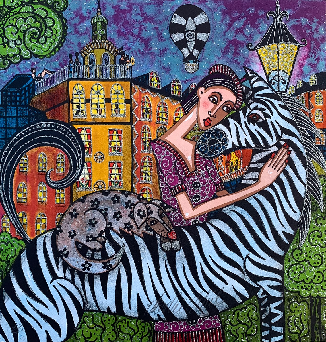 Angelica Wiik är en nutida svensk konstnär som älskas av sin publik för sina färgexplosiva och expressiva målningar. Det är uttalad feminism och kärlek till människor, stadslandskap och djur som får hennes tavlor att lyfta och hon är inte blyg när det gäller färgsättning eller val av motiv. Hennes bilder är som sköna drömmar med musiker på taken och hundar i fönstren. Det är bilder som förför den betraktare som vill bli förförd. Det är bilder man blir glad av att betrakta.